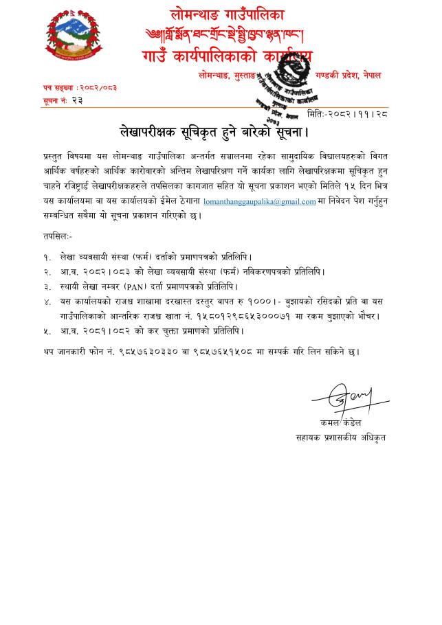 लेखापरिक्षण सूचिकृत हुने बारेको सूचना।